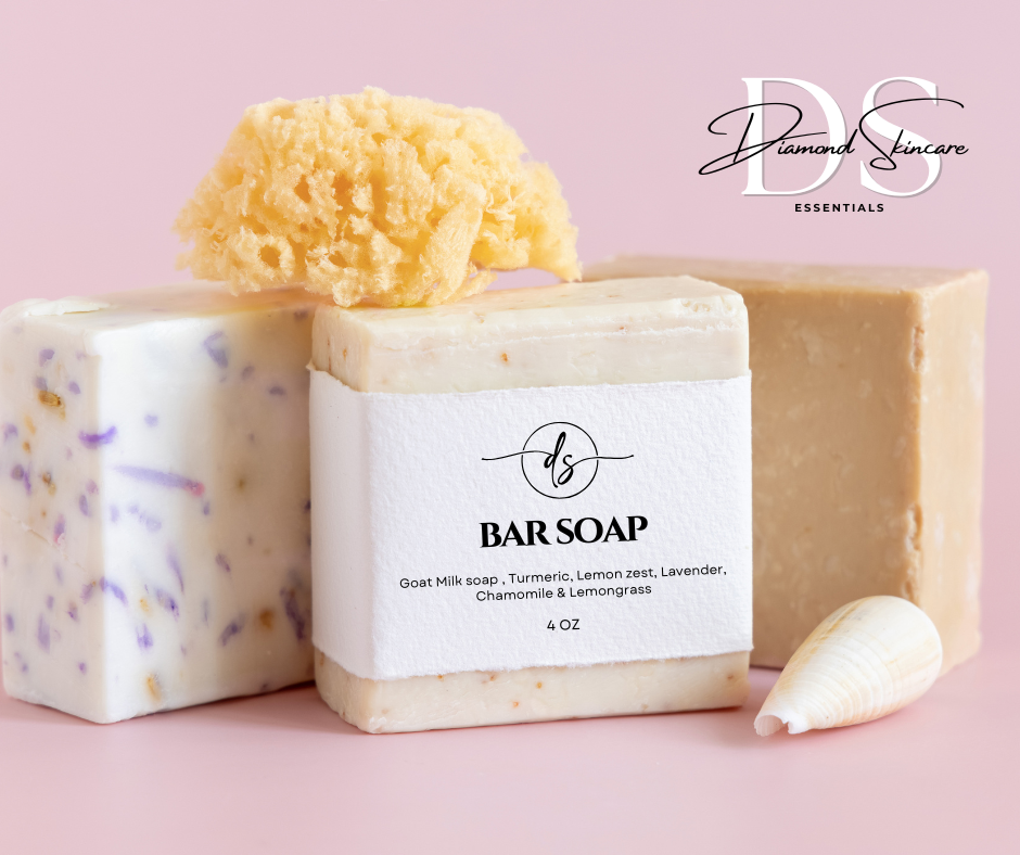 Indulge your skin with Diamond Skincare's luxurious Goat Milk soap, infused with nature's finest ingredients. Experience the rejuvenating properties of Turmeric and Lemon zest, combined with soothing Lavender and Chamomile & Lemongrass to calm your senses. Our unique blend includes exfoliating Oatmeal and moisturizing Organic Honey, ensuring your skin feels soft and nourished. A hint of Vanilla adds a delightful aroma, making each wash a moment of pure bliss. Treat yourself to a refreshing, organic cleanse that reflects Diamond Skincare’s commitment to quality and wellness.